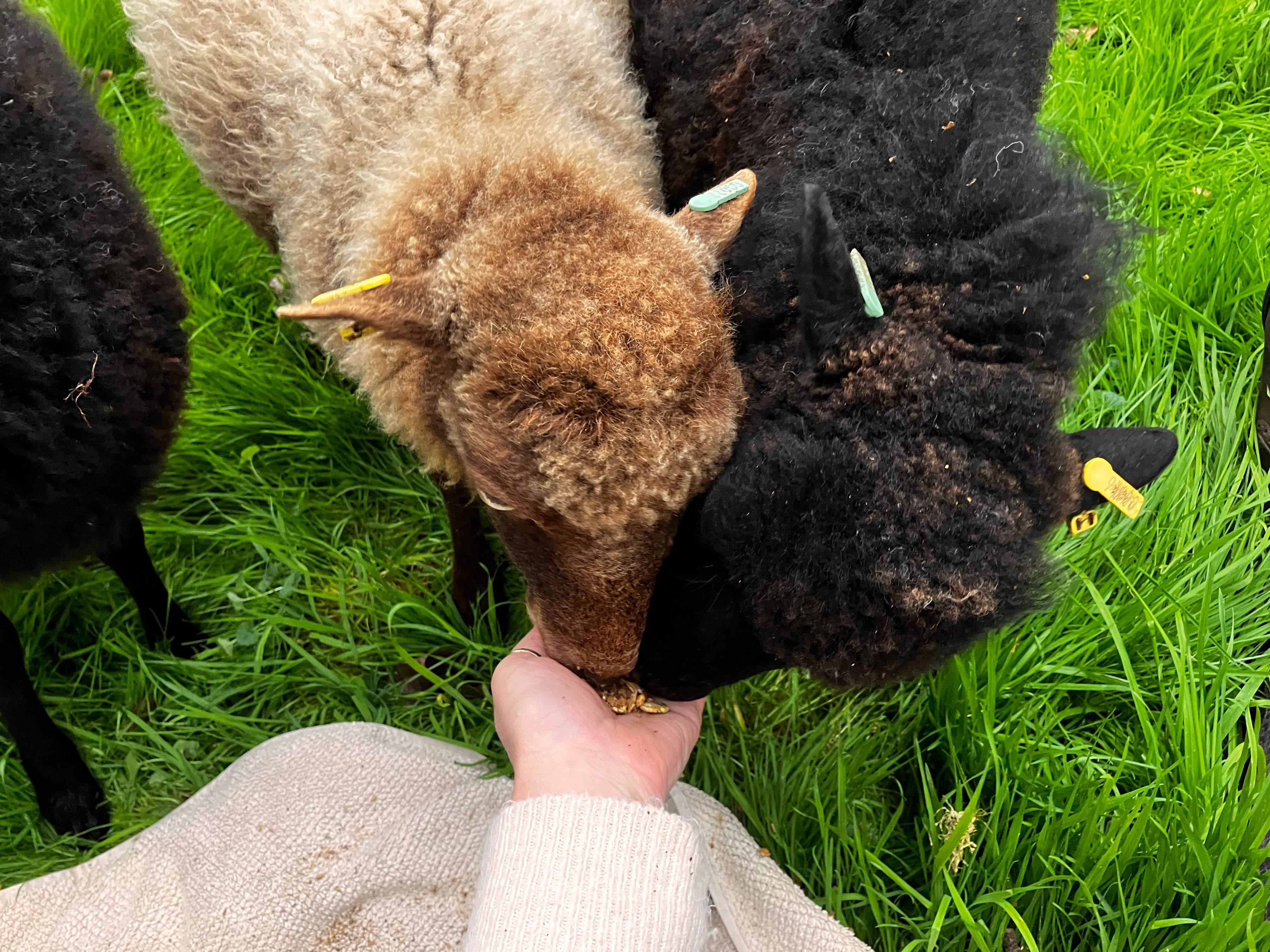 The heart breaker of our 2025 crop, Allie is the youngest, born in a storm at the top of a hill. Sire and dam are both brown, so she was always going to be brown - but I wasn't expecting ginger! A bright, reddish fleece, she is unmissable - often because her head will be deep in your pocket hoping for treats.